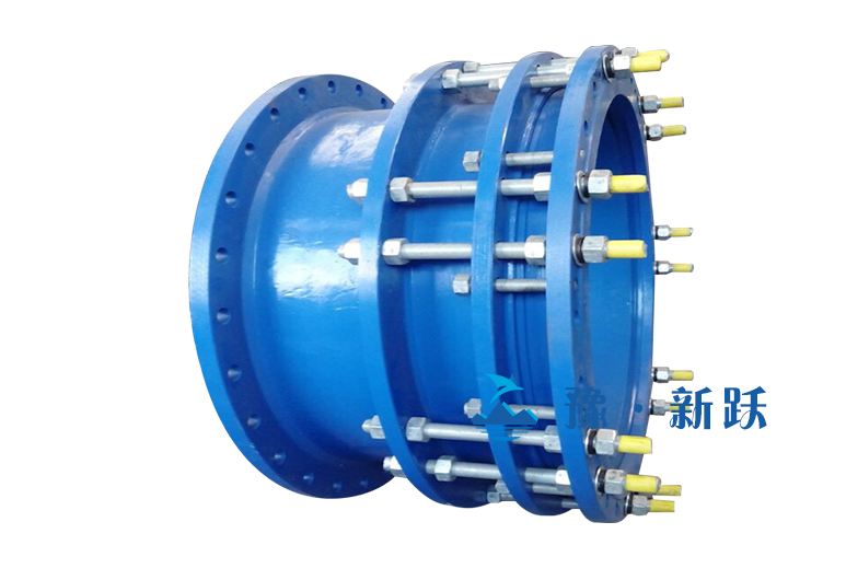 可拆式雙法蘭松套傳力接頭適用于兩邊均與法蘭連接的管路中,安裝時調節(jié)產品兩端與法蘭的安裝長度,對角依次均勻擰緊壓蓋螺栓,使其成為一個整體,并有一定的位移量,方便安裝維修時,根據(jù)現(xiàn)場尺寸進行調整。在工作時可以把軸向推力傳遞至正個管道。