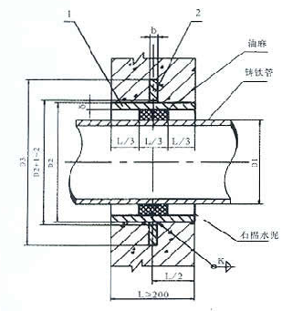 2、Ⅱ型剛性防水套管,適用于鑄鐵管,也適用于非金屬管,但應根據采用管材的管壁厚度修正有關尺寸。
