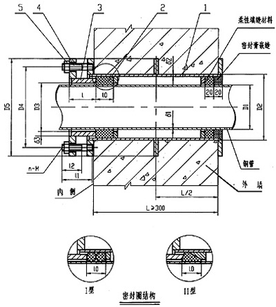 02S404柔性防水套管是適用于管道穿過墻壁之處受有振動或有嚴(yán)密防水要求的構(gòu)筑物的五金管件。防水套管的外部焊接止水翼環(huán),內(nèi)部設(shè)有密封墊,法蘭內(nèi)絲連接,根據(jù)管道安裝的實際情況設(shè)計訂制,用于墻體兩面都需要做防水,建議您使用02S404防水套管。比如潛水式水泵給排水系統(tǒng)管道墻體兩端都要給予防水處理,防止結(jié)構(gòu)滲水!